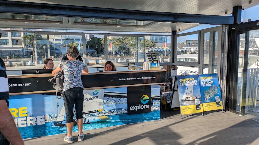 In their email they said their kiosk was diagonal from the Maritime Museum and it was. It’s open in the front and glass on the side and says the company name “Explore” all over the place.