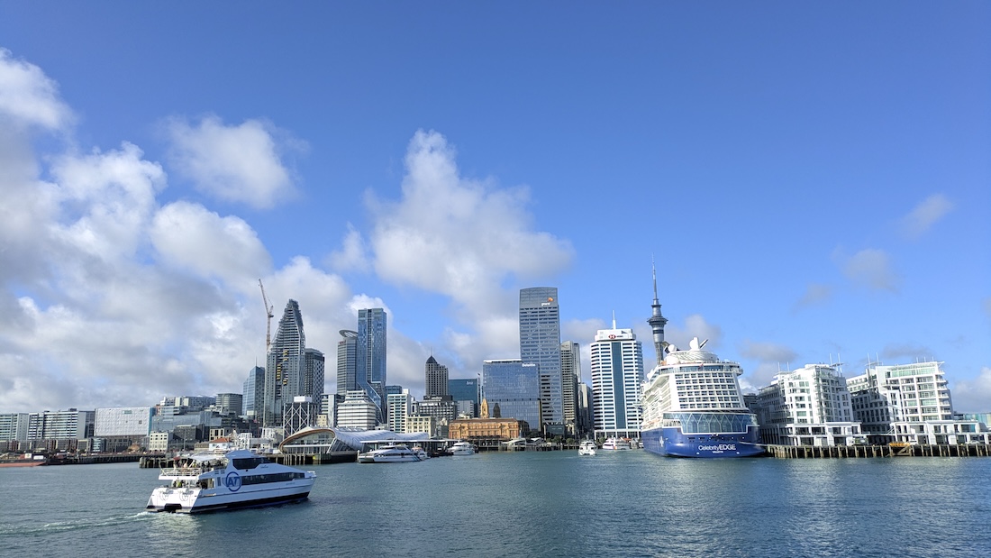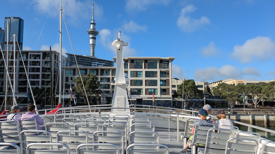 I once again sat on the top deck to take in the sun, breeze and beauty of New Zealand. I was in the front row on the left side and had great views of Auckland’s skyline as we went into the harbor.