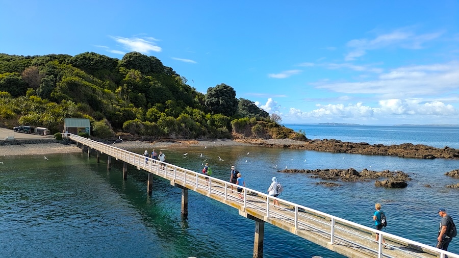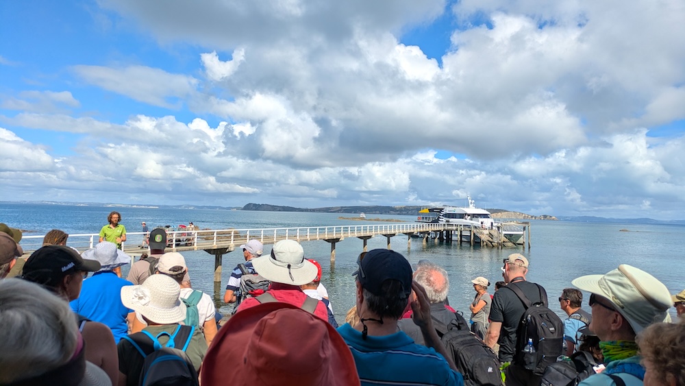 When we arrived, everyone left the ferry and on the shore, we gathered around the Tiritiri Matangi Nature Reserve volunteers and they gave us a debrief and told the people who booked a Guided Walk to go to the left of the dock under the awning.