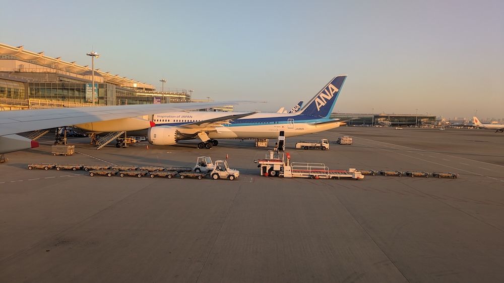 When we were about to land, the pilot said it was a clear day in Tokyo and that we could see Mt. Fuji on the left side of the plane. I was on the right side so just a heads up in case you want the possibility to see Mt. Fuji on approach to Haneda. I was a little bummed at the time, but luckily I got to see Mt. Fuji up close and gorgeous earlier in this 3 month trip: