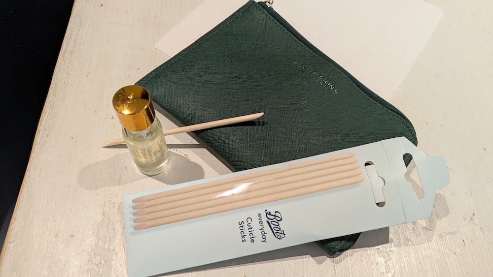 And based on advice from that same YouTuber, I have been using Dental Picks to get the stickers off while waiting for the cuticle oil to dissolve the adhesive.