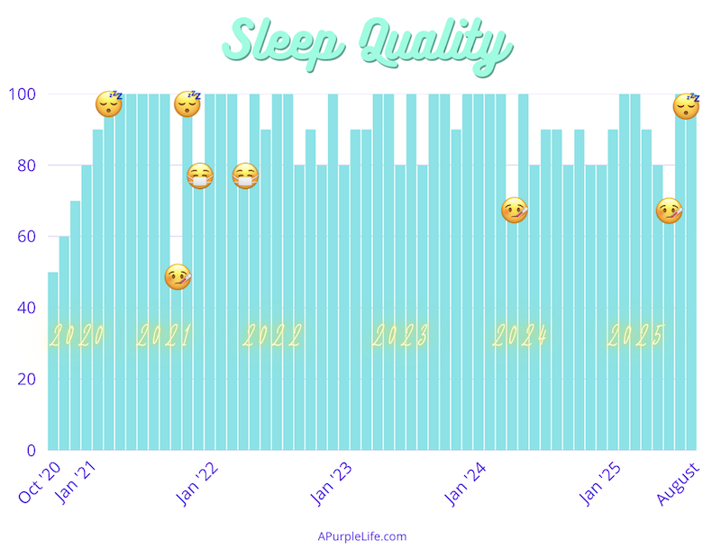 I slept well this month! I really enjoyed my slower pace of life and as a result I often awakened with the sun, which I loved.
