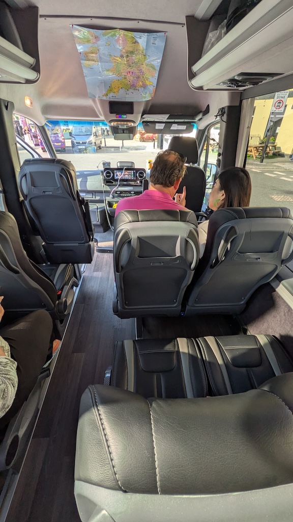 Alan then told us we could get on the bus and my partner headed to the right side of the van. The tour operator jokingly asked “Are you driving🀣?” because we were in the UK and just like their left side of the road driving, the passenger entrance is on the left side of the van here. We figured it out and got on the van!
