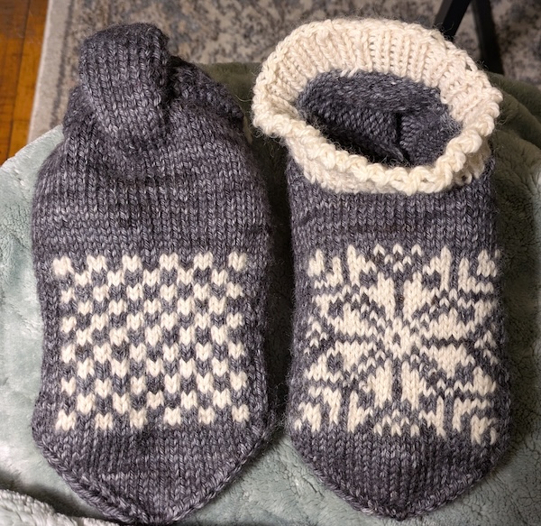 They were slippers for my Partner, which also would be my first foray into knitting something that someone else would wear daily.